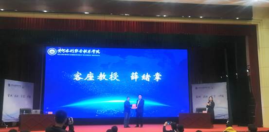 最后,水利工程学院副院长闫国新为薛绪掌研究员颁发了客座教授证书。此次学术报告有助于我院课程建设、人才培养和科学研究,以及学校的高水平专业群建设。