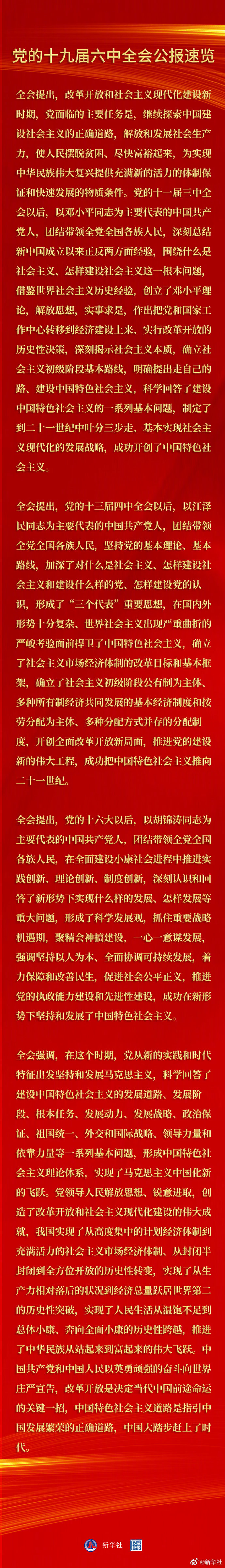 党的十九届六中全会公报速览