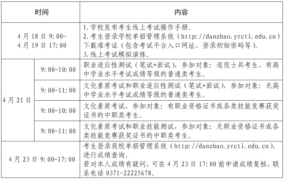 根据河南省教育厅办公室《关于进一步做好2022年高等职业教育单独考试工作的紧急通知》(教办考院〔2022〕100号)精神,我校对2022年高等职业教育单独考试招生工作做出调整,现公告如下。